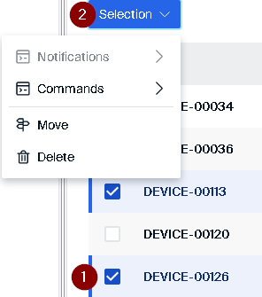 Once you have selected multiple devices, a [Selection] button (2) is displayed above the list.
