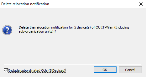 To include the devices of all subordinate OUs, in the Delete relocation notification message, select the option Include sub organization units.