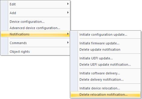 For the relevant devices, from the context menu, choose Notifications > Delete relocation notification.